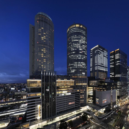 JR中央雙塔是日本名古屋的地標綜合體,由兩座摩天大樓組成,位於名古屋站上方。北塔是中日本鐵路公司的辦公樓,設有辦公和設施;南塔則是一家豪華酒店。綜合體內還設有名為"Midland Square"的購物商場和"Sky Promenade"觀景台,提供全景視野。 JR中央雙塔地理位置優越,設施齊全,成為商業、交通、住宿和娛樂的中心,象徵著名古屋這座充滿活力的城市。